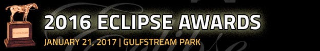 Winners for the 2016 Eclipse Awards, selected by voters from Daily Racing Form, the National Turf Writers and Broadcasters, and the National Thoroughbred Racing Association. Click on a winner to read DRF's profile. Winners were announced Jan. 21 at the 46th Annual Eclipse Awards dinner at Gulfstream Park in Hallandale Beach, Fla. Horse of the Year California Chrome The Sunshine State became the Golden State on Saturday night at the 46th annual Eclipse Awards dinner, as California Chrome made off with the golden statuette as Horse of the Year for the second time and led a parade of California-based connections who won divisional titles. California Chrome outpolled Arrogate for Horse of the Year after both won divisional titles earlier in the evening. California Chrome was the unanimous choice among the 248 voters as champion older dirt male, while Arrogate captured the title as champion 3-year-old male. Read more » Voting: California Chrome, 202; Arrogate, 40; Songbird, 5; Highland Reel, 1. 3-year-old male Arrogate Arrogate came far and fast in 2016. He did not make his debut until 20 days before the Kentucky Derby, did not get his first win until 15 days after the Preakness and six days before the Belmont Stakes, and did not run in a stakes race until the Travers. But his record-setting performance in the Travers, followed by his victory in the Breeders’ Cup Classic against top older horses such as California Chrome, has left him as the champion 3-year-old male against two other finalists – Nyquist and Exaggerator – who won Triple Crown races. View Full Profile » Voting: Arrogate, 243; Exaggerator, 2; Nyquist, 2; Gun Runner, 1. 3-year-old female Songbird It’s difficult to find more superlatives to describe Songbird. The filly has already run through most standard descriptors. Songbird will continue to shine brightly in 2017 as she moves into the older female division. View Full Profile » Voting: Songbird, 248. Older male California Chrome California Chrome was a slam-dunk choice in the Eclipse Award category of champion older dirt male because he fulfilled a carefully crafted 2016 campaign that was purposely aimed at the highest levels of the game, and came within a few feet of absolute perfection. View Full Profile » Voting: California Chrome, 248. 2-year-old male Classic Empire In a span of 65 days, Classic Empire gave trainer Mark Casse one his most impressive wins and one of his most bizarre moments in racing. In the end, Classic Empire gave his trainer an Eclipse Award as well. View Full Profile » Voting: Classic Empire, 248.  2-year-old female Champagne Room Now that the dust has settled – and, after more than two months, the dust has indeed settled – it doesn’t really matter that Champagne Room was 33-1 when she won the 14 Hands Winery Breeders’ Cup Juvenile Fillies at Santa Anita. The only thing that REALLY matters is, Champagne Room won the Juvenile Fillies. And with the Juvenile Fillies being the biggest, most important event in the 2-year-old filly division, Champagne Room’s victory makes her not only a thoroughly deserving divisional Eclipse Award winner, but also squarely the one to beat among 2-year-old fillies. View Full Profile » Voting: Champagne Room, 202; New Money Honey, 21; Lady Aurelia, 11; Pretty City Dancer, 5; Shane’s Girlfriend, 3; Abel Tasman, 2; Miss Sky Warrior, 2; Victory to Victory, 1; Voter Abstentions, 1. Older female Beholder Beholder carried a lot of history into 2016 – she had campaigned four years already, earned three championships, won nine Grade 1s including two Breeders’ Cups, and had won 15 of 20 starts while earning more than $4 million. On the racetrack, what more could she accomplish? Beholder’s final season was outstanding – six starts, three wins, three seconds, and a thrilling victory over previously undefeated Songbird in the Longines Breeders’ Cup Distaff to cap a spectacular career for Beholder, an Eclipse Award as 2016 champion older dirt female. View Full Profile » Voting: Beholder, 246; Stellar Wind, 2. Trainer Chad Brown Horses trained by Chad Brown don’t seem to bounce, nor do the trainer’s statistics. In 2016, he continued his string of ascending yearly earnings since beginning his career in 2007, leading all trainers with more than $23.1 million in North American purse money. Brown was nearly $2 million ahead of Todd Pletcher, who had held the money-won crown from 2010-2015. Browns also was tops in other key categories. He won 42 graded stakes, again surpassing Pletcher, who had been the leading graded-stakes-winning trainer since 2015, and he edged Bob Baffert for the lead in Grade 1 victories by a 12-11 margin. View Full Profile » Voting: Chad Brown, 208; Bob Baffert, 21; Mark Casse, 11; Art Sherman, 3; Steve Asmussen, 2; Karl Broberg, 1; Todd Pletcher, 1. Voter Abstention, 1. Jockey Javier Castellano Javier Castellano won his fourth consecutive Eclipse Award for outstanding jockey after leading all North American-based riders in both mount earnings and graded stakes wins in 2016. Castellano’s year included a Longines Kentucky Oaks victory with Cathryn Sophia, a Breeders’ Cup Juvenile Fillies Turf win with New Money Honey, and a standout turf mount in Flintshire. View Full Profile » Voting: Javier Castellano, 146; Mike Smith, 44; Jose Ortiz, 41; Florent Geroux,12; Irad Ortiz, Jr., 2; Julien Leparoux, 1. Voter Abstentions, 2. Male turf Flintshire Trainer Chad Brown’s stable already was loaded with high-class turf horses when Prince Khalid Abdullah’s Juddmonte Farms told Brown early in 2016 that it was sending him another star. Flintshire’s world travels twice had brought him to the United States for single races. Now, he would be spending the entire 2016 season with Brown. Flintshire, a Juddmonte homebred by Dansili and out of the Sadler’s Wells mare Dance Routine, became the best grass horse in North America. He wasted little time proving it, and even bef