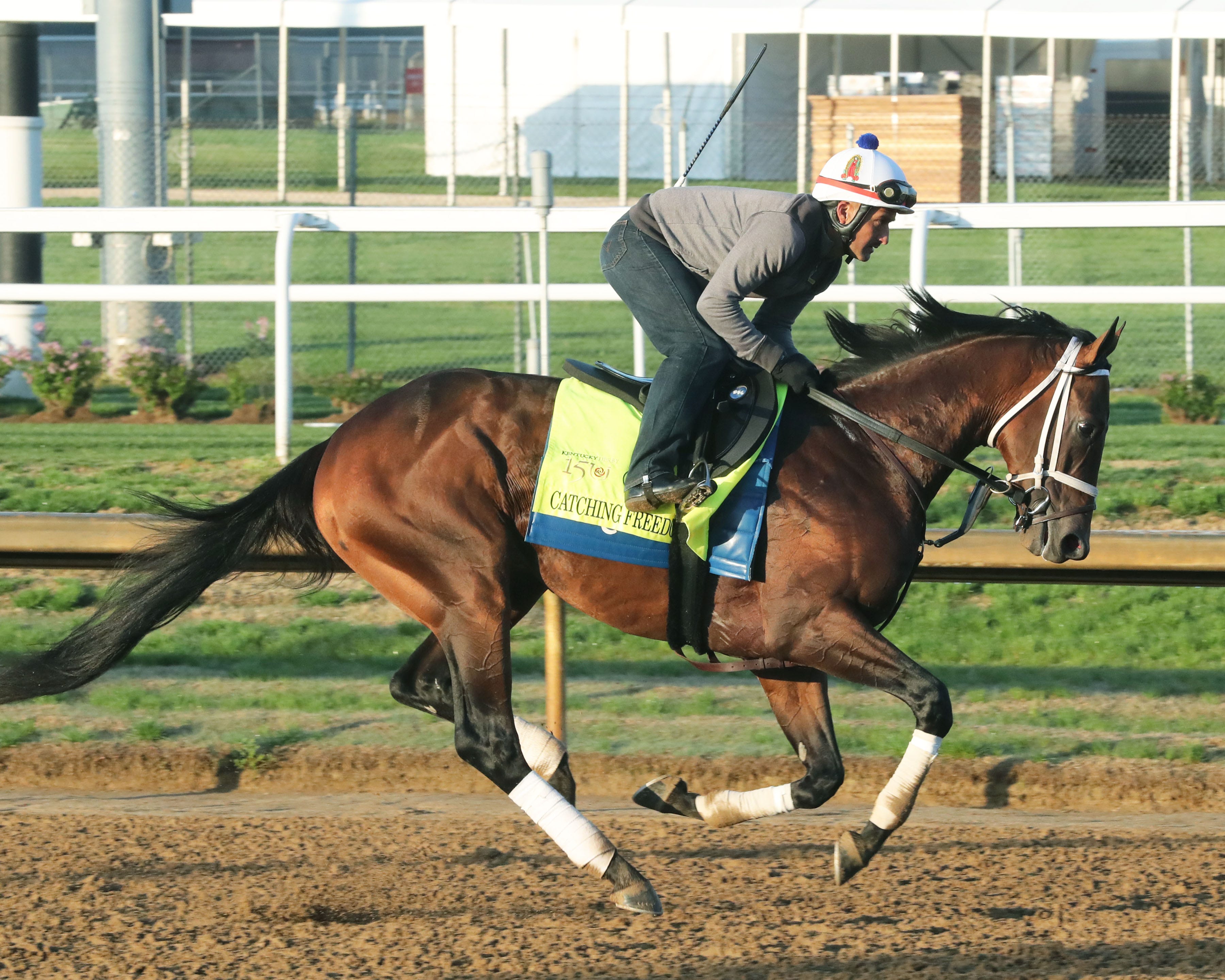 CATCHING FREEDOM has developed this season from immature colt to consummate pro. He circled the field to score an impressive Grade 2 victory last out in the Louisiana Derby, albeit flattered by the closers-friendly race flow. But he has improved each start, and if the Derby fractions come up excessively fast, Catching Freedom could partner with Sierra Leone for an off-the-pace exacta.