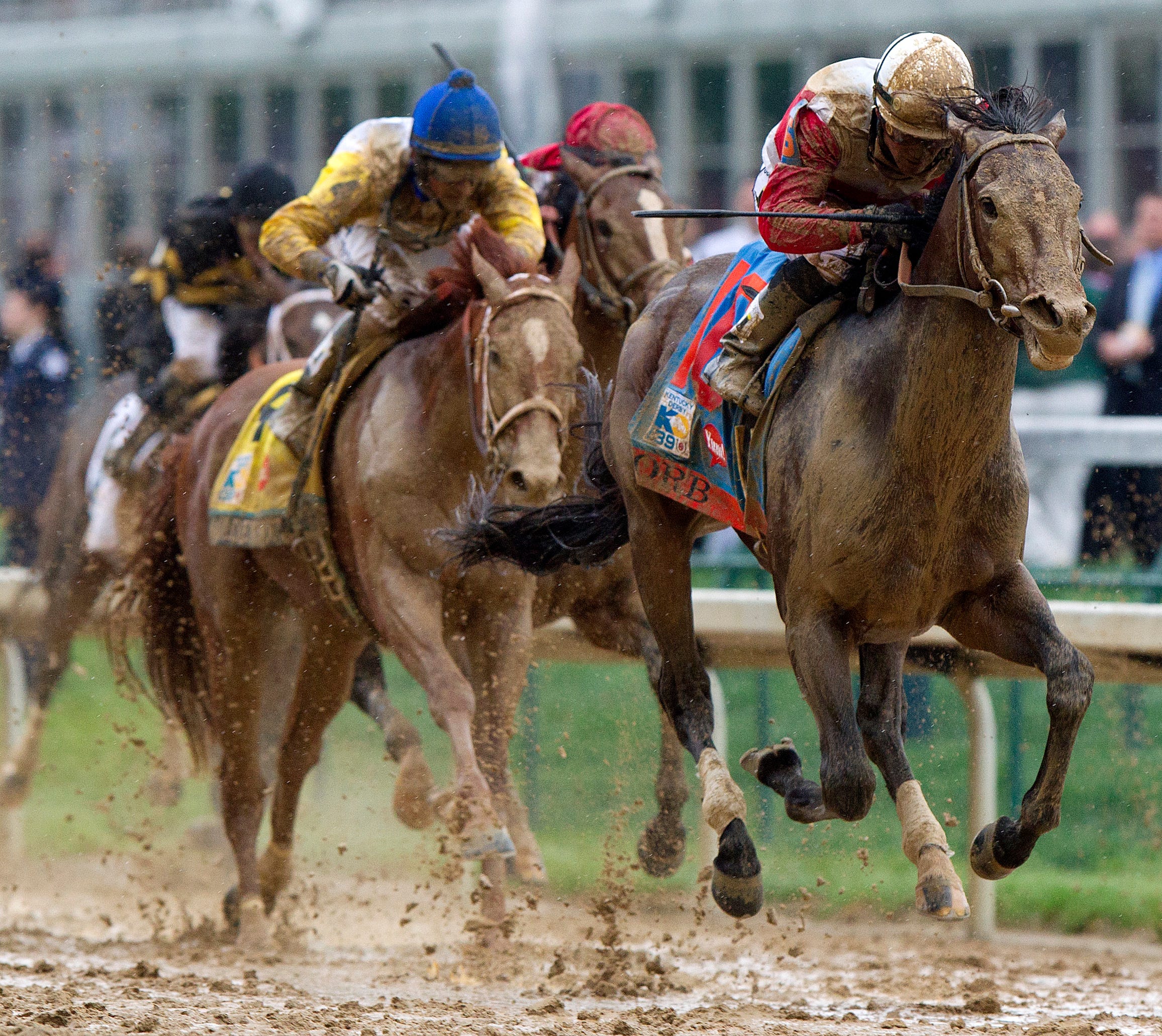 Orb (right) and jockey Joel Rosario begin to pull away in the stretch.