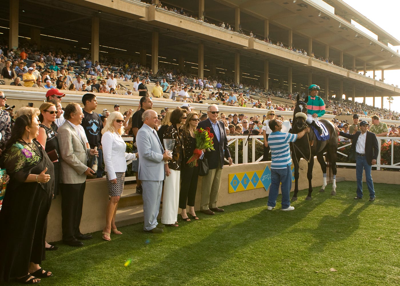 Zenyatta with her connections following the 2009 Hirsch, the second of her three career victories in the race.