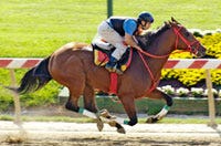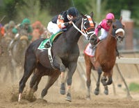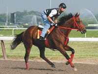 ELMONT, N.Y. - The heat got turned up at Belmont Park on Monday in every way possible. Anticipation began to simmer regarding the 137th Belmont Stakes on Saturday, which features a showdown between the winners of the first two legs of the Triple Crown, Kentucky Derby winner Giacomo and Preakness Stakes winner Afleet Alex. And the temperature here began to rise, too, resulting in a warm, muggy morning that left Afleet Alex in need of a quick, cool spray from a garden hose when he returned from his demanding morning chores.