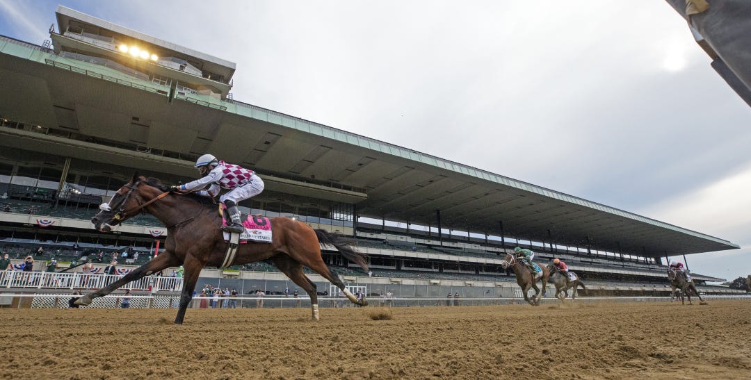 Decorated Invader, close to the pace from the start under Joel Rosario, runs away in the stretch to win the Pennine Ridge on Saturday at Belmont Park.
