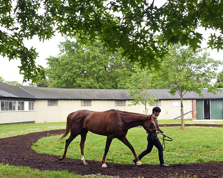 ELMONT, N.Y. – Master Fencer walked for one hour Thursday morning outside his barn at Belmont Park, and his connections are confident there are no issues with the colt that would prevent him from running in the $1.5 million Belmont Stakes on June 8 at Belmont Park.