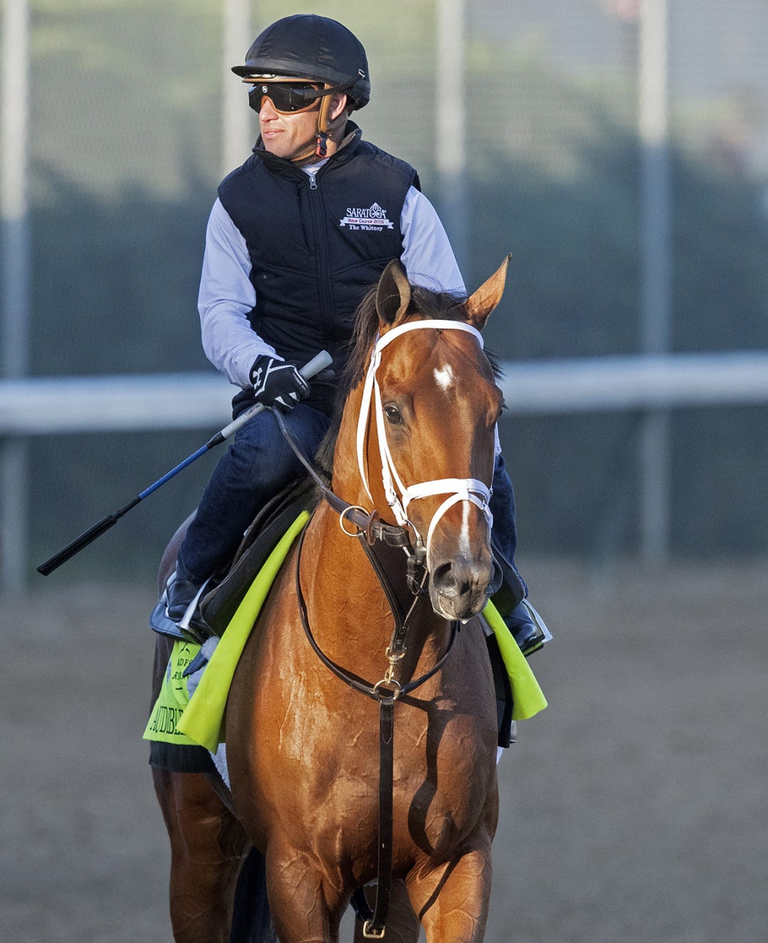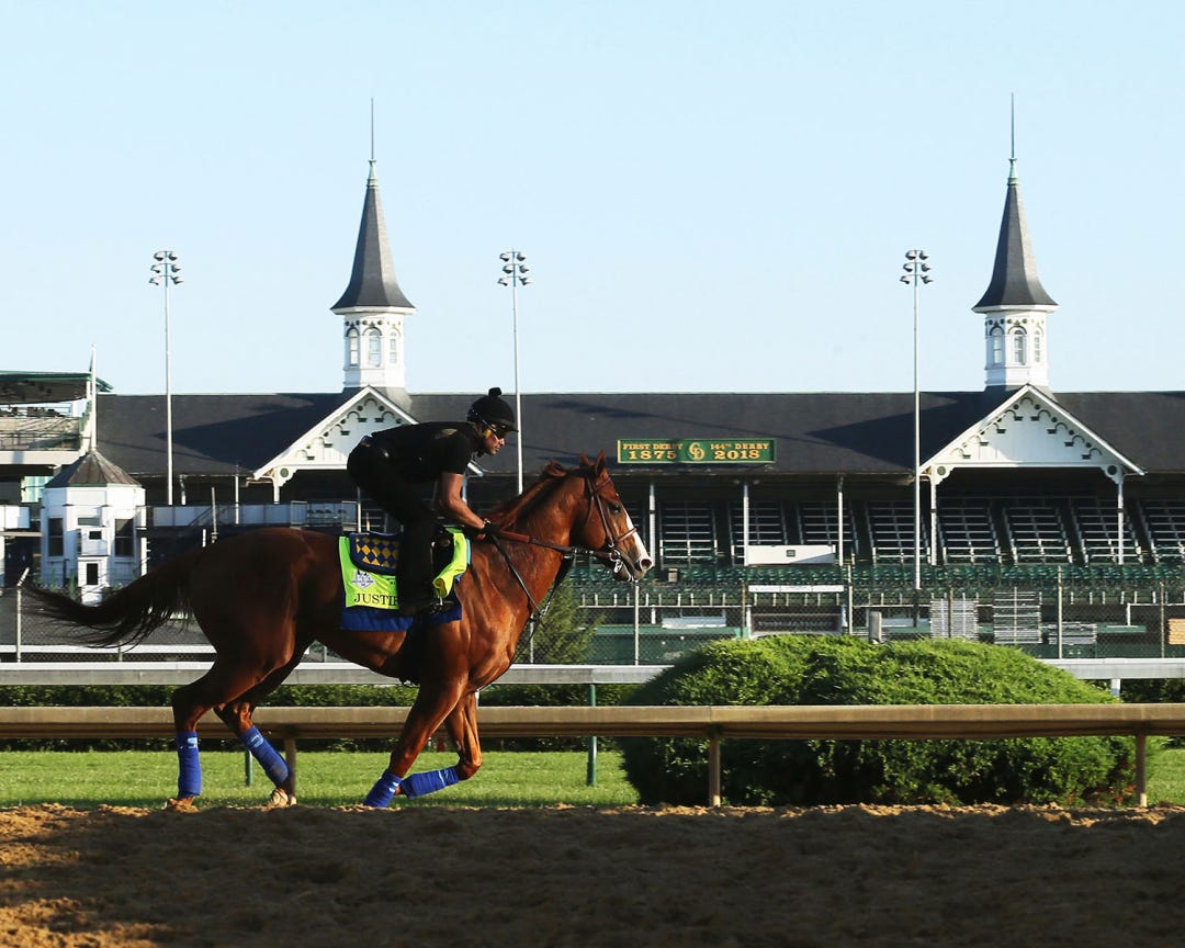 LOUISVILLE, Ky. – Without any of the drama or whispers that accompanied his first day of training following the Kentucky Derby, Justify returned to training Thursday morning at Churchill Downs for the first time since his epic Preakness triumph amid building excitement toward the final leg of the Triple Crown, the June 9 Belmont Stakes.