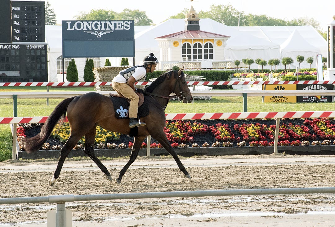 While Nyquist remained in his stall Wednesday at Pimlico in Baltimore, his Preakness conqueror, Exaggerator, visited the racetrack for the second straight morning.