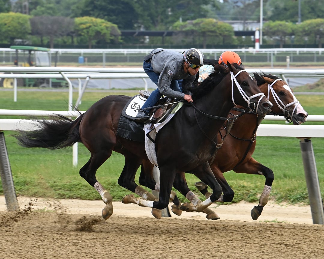 ELMONT, N.Y. – Only half the prospective 10 starters for this year’s Belmont Stakes are currently on the grounds, and all five of whom got in works over the local strip during the past five days. The last of that group is Peter Pan winner Arcangelo, who breezed shortly after the renovation break under regular rider Javier Castellano here Wednesday.