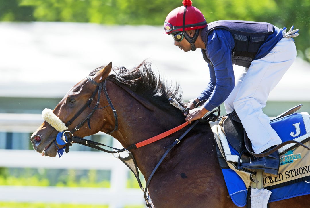 Wicked Strong, the Wood Memorial winner who was made the second choice for Saturday’s $1.5 million Belmont Stakes, walked in and stood quietly twice on the training track. Wicked Strong misbehaved near the gate before the Holy Bull in Florida and was a bit anxious during the post parade in the Kentucky Derby.