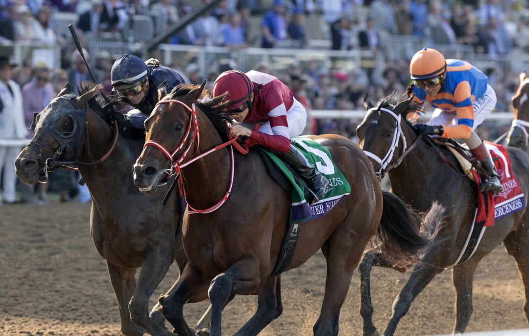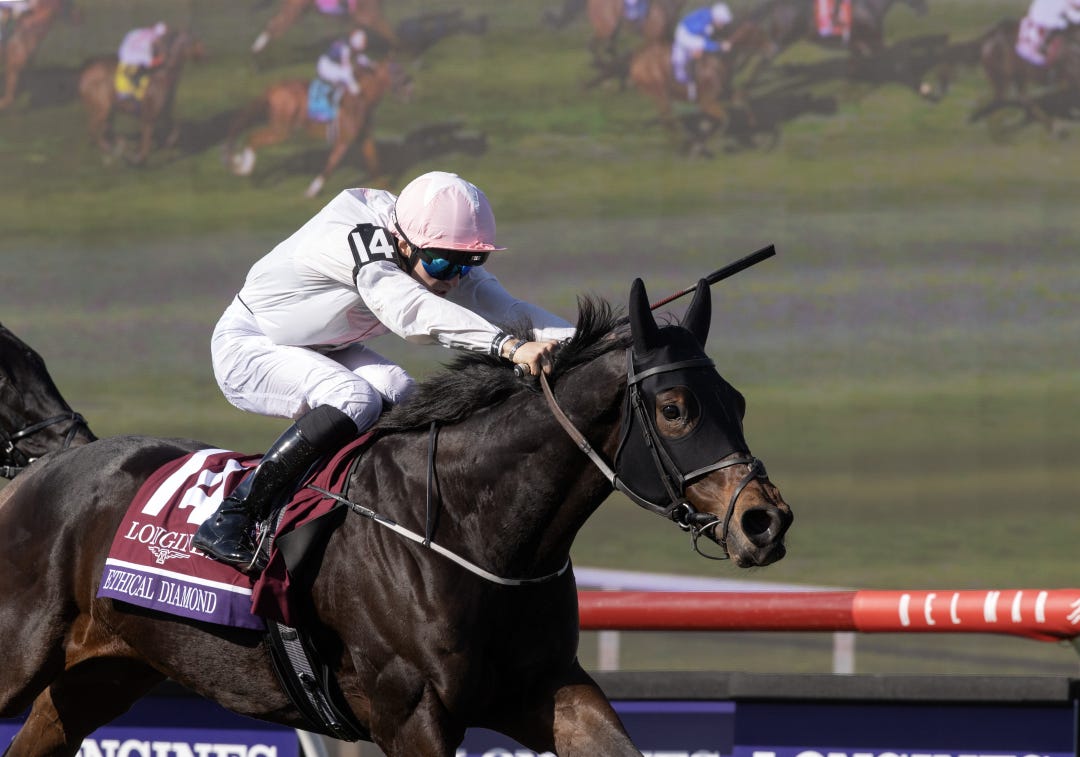 Ted Noffey wins his third straight Grade 1 in the Breeders' Cup Juvenile. He is a perfect 4 for 4 with wins in the Hopeful at Saratoga and Breeders' Futurity at Keeneland.