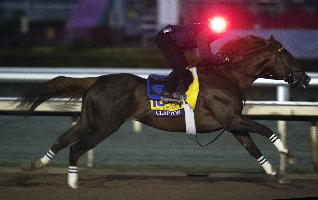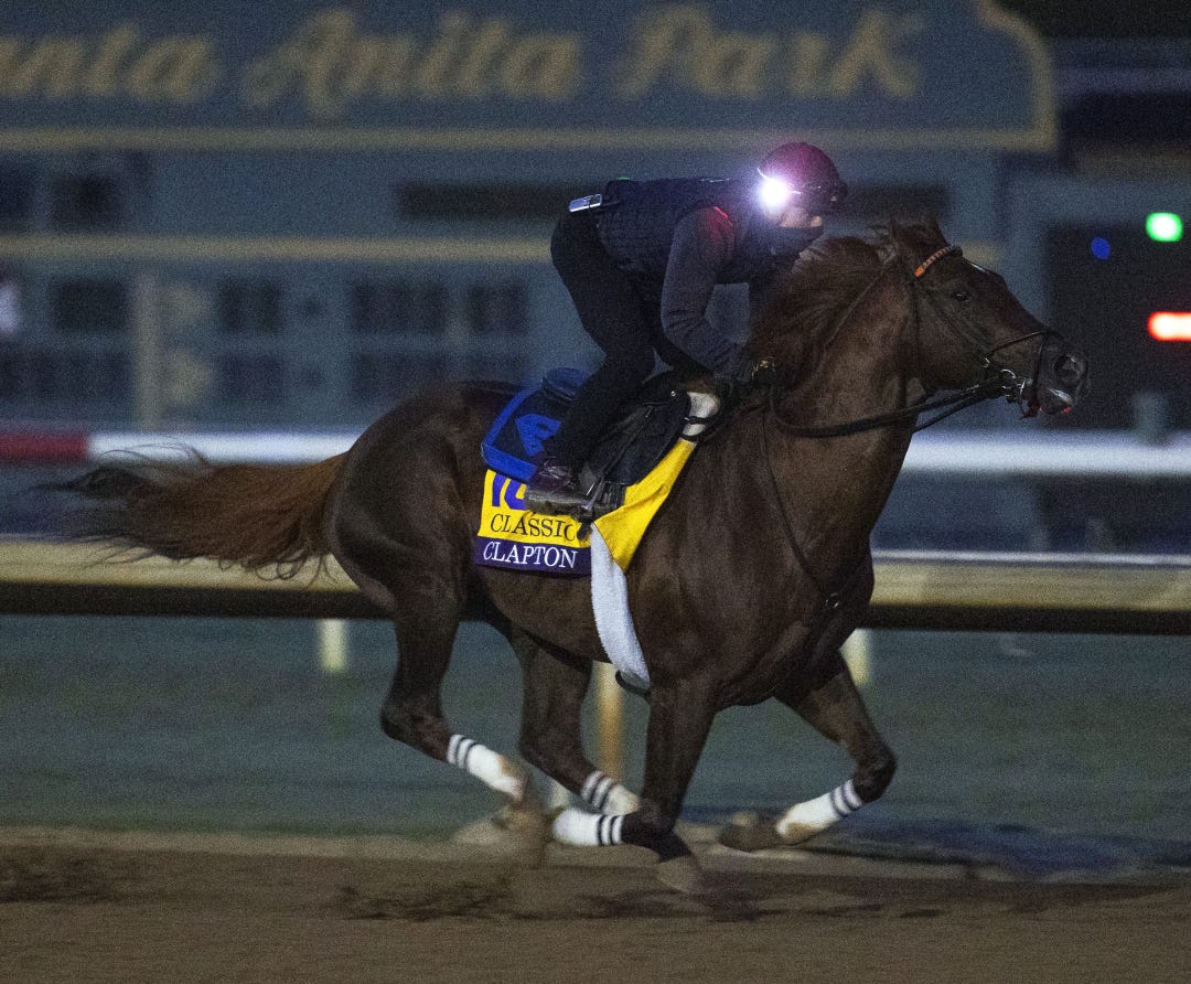 At Santa Anita, Clapton, the Lukas Classic winner, went a half-mile in 48.72 seconds while galloping out five furlongs in 1:01.22 and six furlongs in 1:13.50, per Daily Racing Form clocker Mike Welsch.