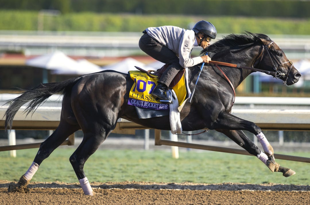 ARCADIA, Calif. — Before the significant injury suffered by Geaux Rocket Ride in a workout at Santa Anita late Saturday morning, five other potential Classic starters put in workouts at four different venues for the $6 million Classic to be run Nov. 4.