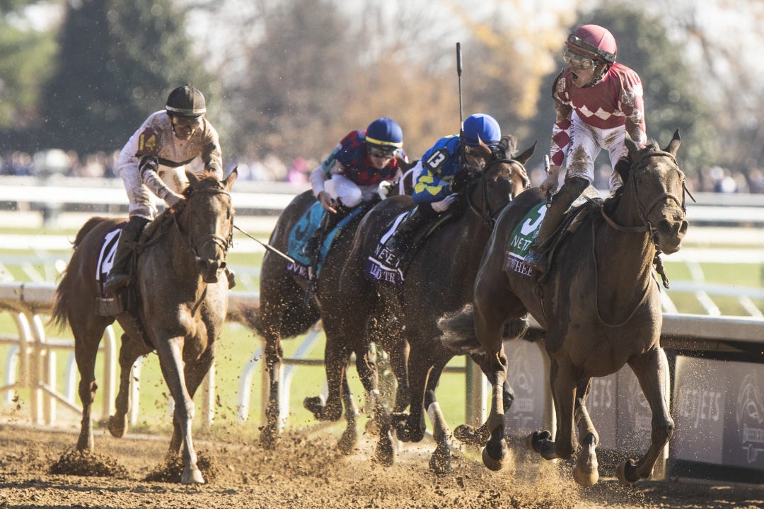 LEXINGTON, Ky. – Cody’s Wish sustained a strong half-mile run to come from last and dispatch Cyberknife at the wire to win the $1 million Breeders’ Cup Dirt Mile at Keeneland on Saturday after a thrilling stretch battle.