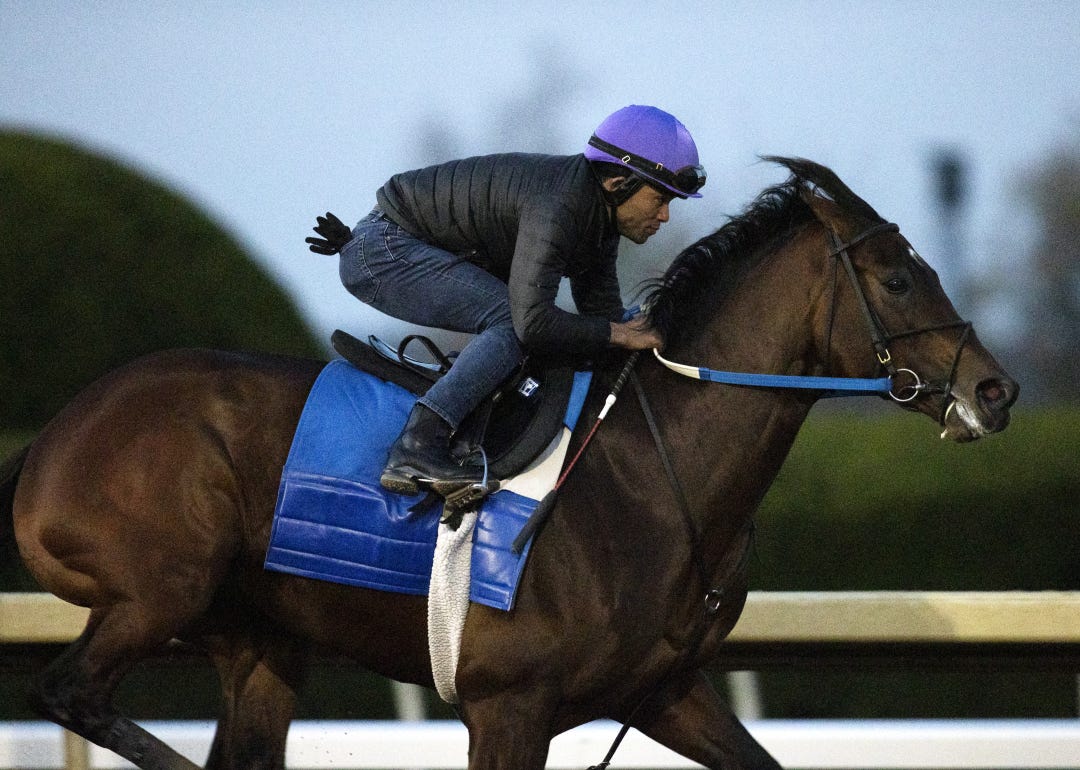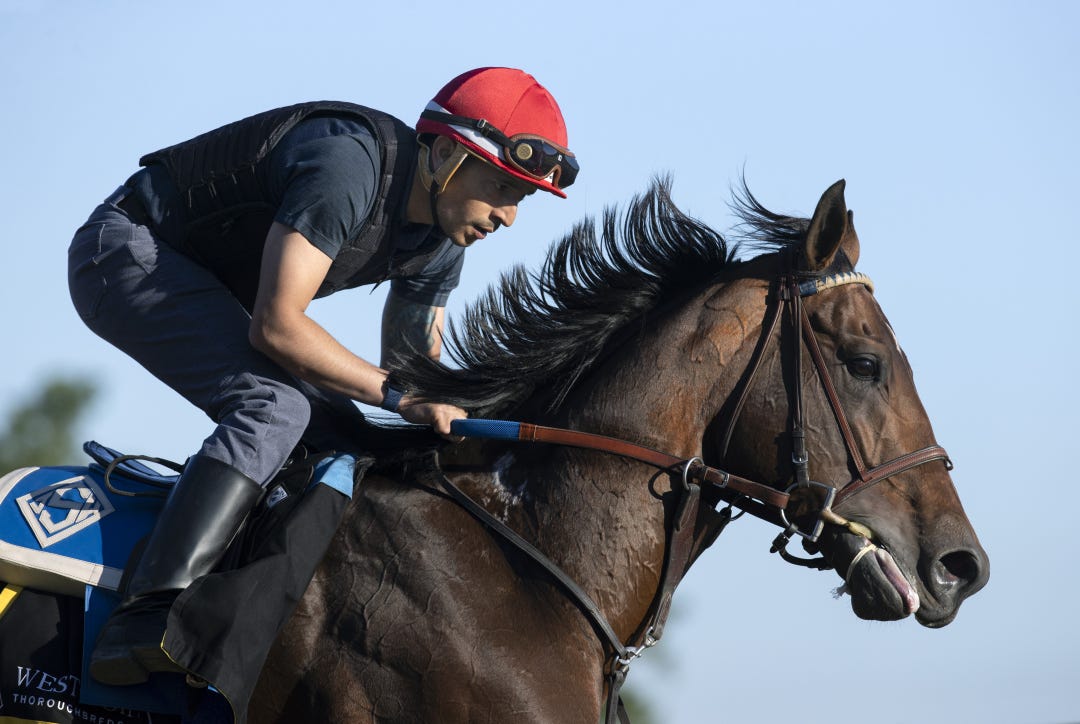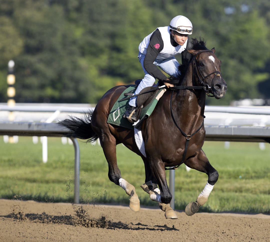 Olympiad works a half-mile in 49.80 seconds last Sunday over the Oklahoma training track at Saratoga.