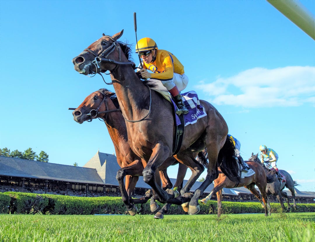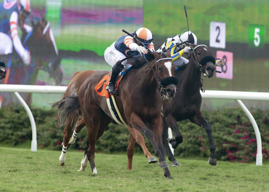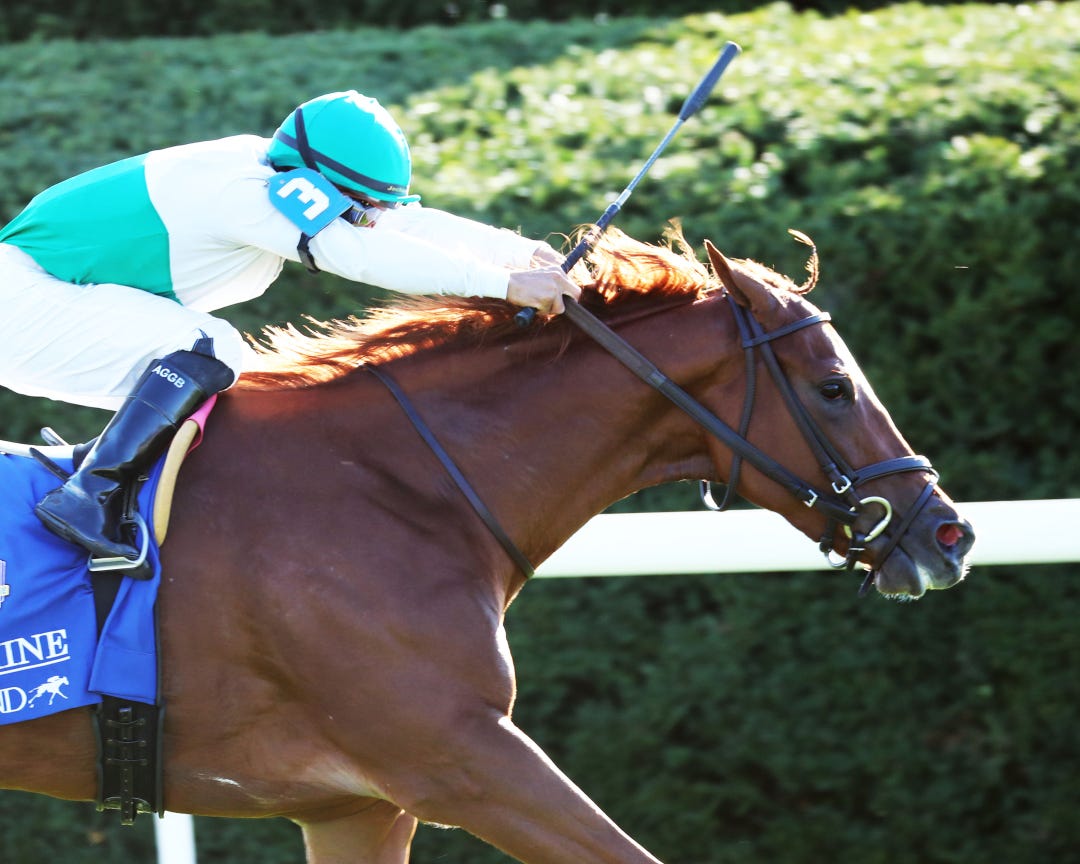 LEXINGTON, Ky. – While her 13 rivals had varying degrees of trouble or simply were found wanting, Wonder Wheel led them all on a merry chase Friday when holding on for a narrow victory in the Grade 1, $497,337 Alcibiades Stakes as Keeneland kicked off its 2022 fall meet amid brilliant fall weather.