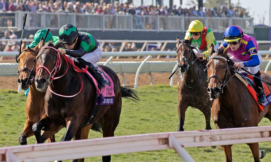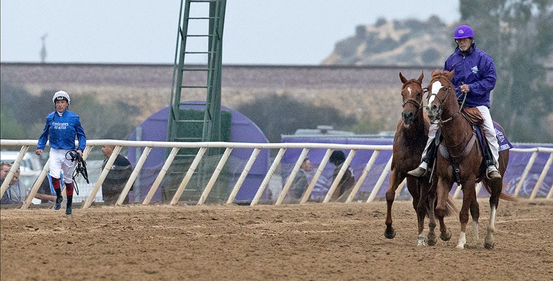 It was the second Breeders’ Cup victory of the weekend for Godolphin, trainer Charlie Appleby, and jockey William Buick, and like the first one, the Mile had pre-race drama.