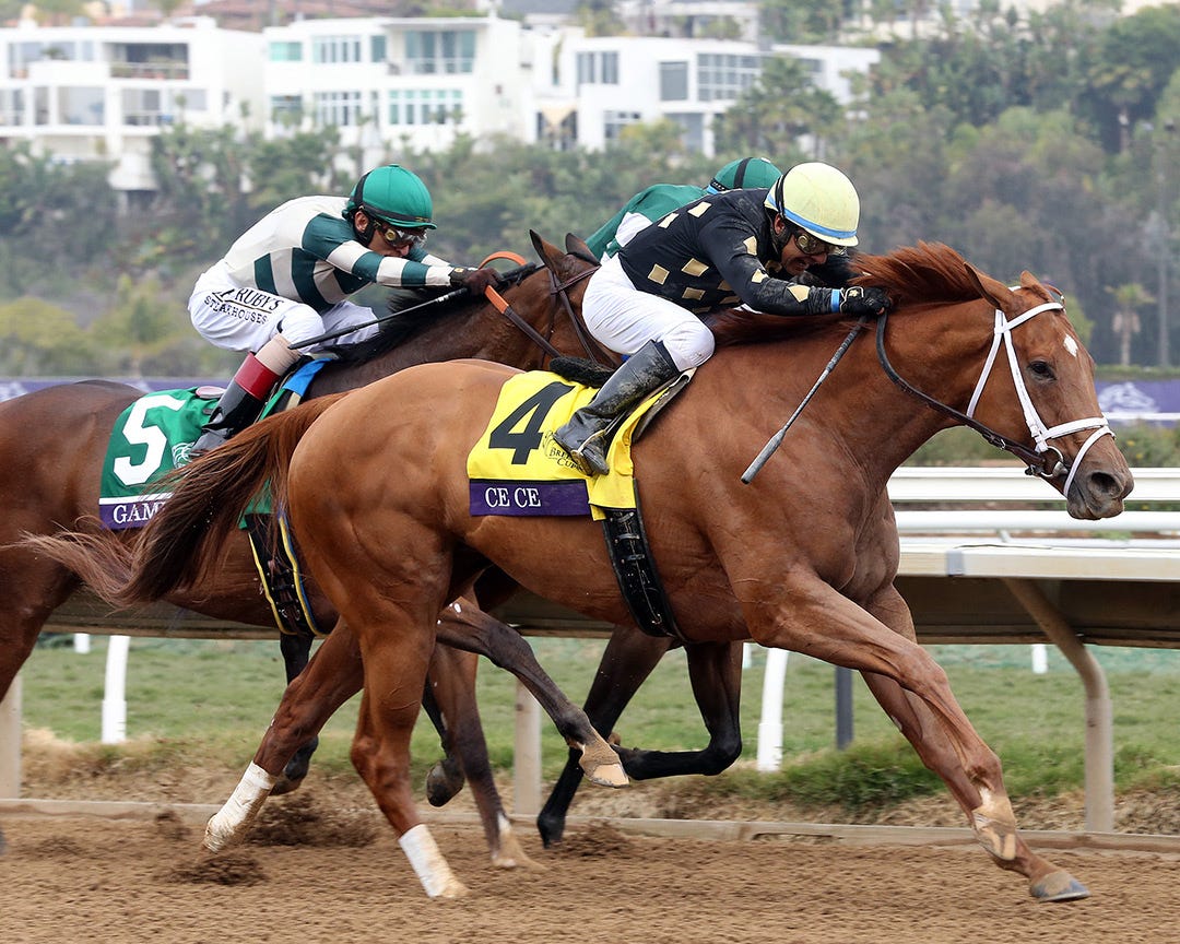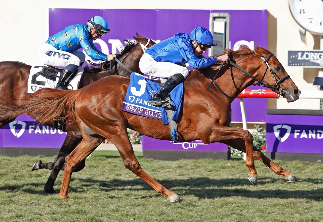 DEL MAR, Calif. – Space Blues, finishing like a rocket, launched himself past pacesetting Smooth Like Strait and won the $2 million Breeders’ Cup Mile in his career finale.