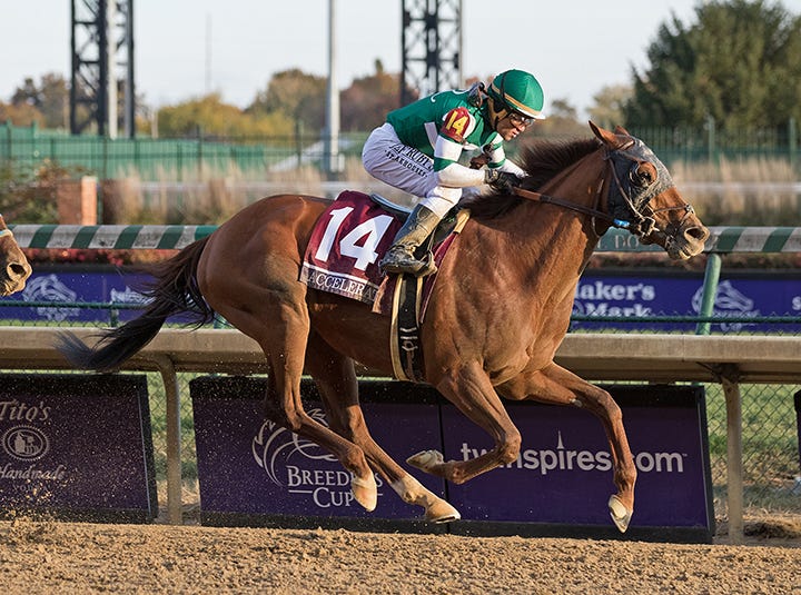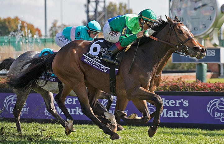 Midnight Bisou was a $19,000 buyback by breeder Woodford Thoroughbreds when she appeared at the 2016 Keeneland September yearling sale. Jeff Bloom then purchased her for a bargain $80,000 after she breezed a furlong in a relatively ordinary 10 1/5 seconds at the 2018 OBS spring sale of 2-year-olds in training.