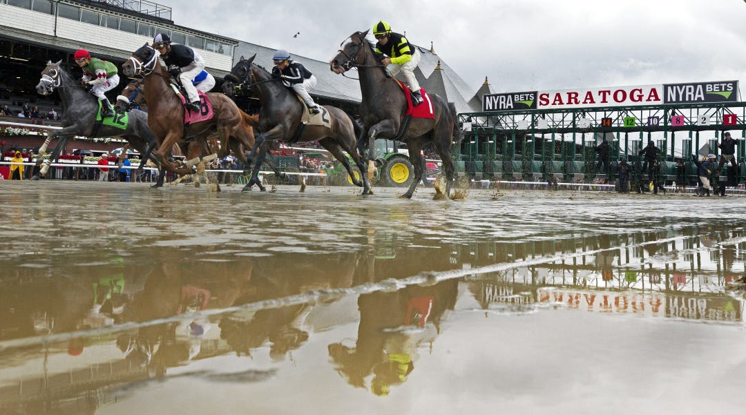 SARATOGA SPRINGS, N.Y. – Due to heavy rains that fell overnight, the Grade 1 Saratoga Derby and the Grade 3 Troy Stakes scheduled for Saturday at Saratoga have been canceled and will be rescheduled for Aug. 10, the New York Racing Association announced just before post time of Saturday’s 13-race card.