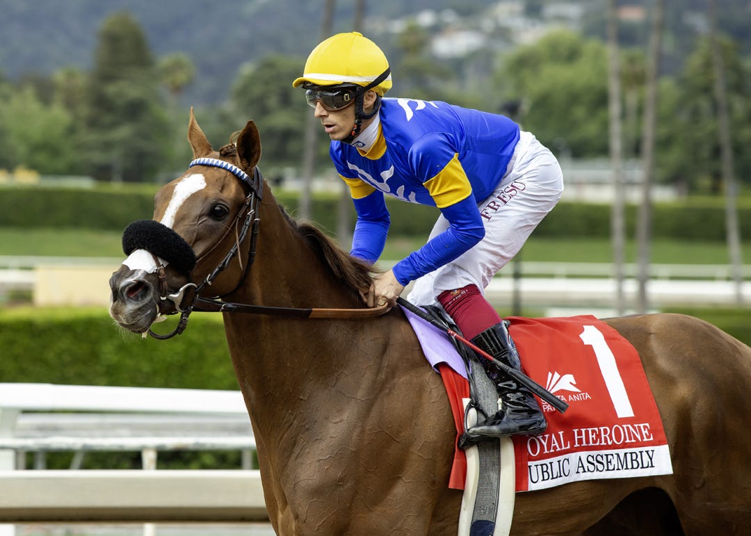 Bought for $225,000 at Keeneland last November, Public Assembly won her California debut in an allowance race at 1 1/4 miles on turf on March 30 in her first start of 2025, and followed with a win in her first start in a stakes in Saturday’s Grade 3 Royal Heroine Stakes for fillies and mares at a mile on turf.