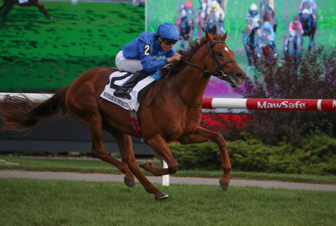 Locked, a multiple Grade 1 winner who is coming off a victory in the Grade 2 Woodward Stakes, was withdrawn from consideration from the $7 million Breeders’ Cup Classic on Friday. Since the Classic was scheduled to be his last race, Locked has officially been retired from racing. In March, it was announced he was going to stand stud at Gainesway Farm in Kentucky beginning in 2026.