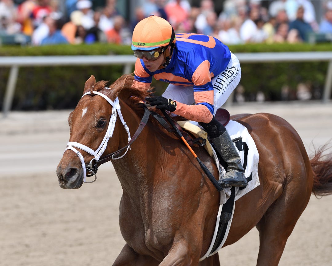 RACE 7: IN A JAM blossomed in his last three outings on the Gulfstream grass, culminating with a gutsy score in a first-level allowance/optional claimer. He’s versatile in terms of running style and could make his stakes debut a winning one. (1)