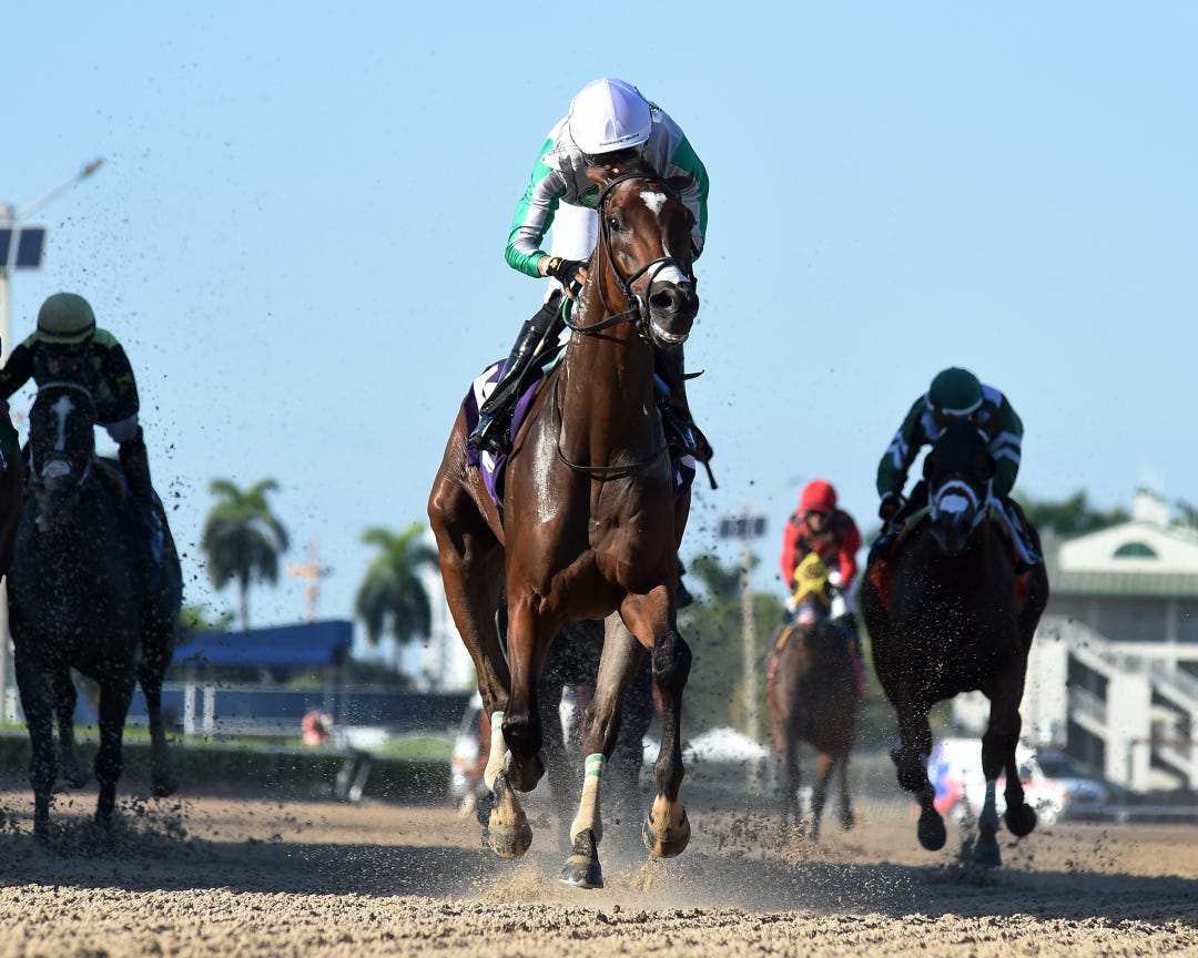 GP RACE 9: OCTANE is dropping off a wide fifth behind the likes of O’Connor and Ny Traffic in the Grade 3 Harlan’s Holiday, a prep for the Grade 1 Pegasus World Cup. He stands out on Beyer Speed Figures and class in this two-turn stakes for Florida-breds, in which his tactical speed should come in handy after breaking from the rail. (1)