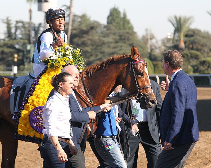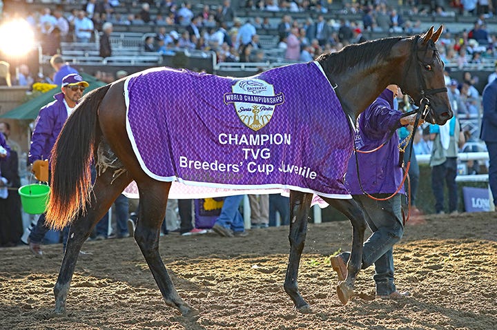 A Breeders’ Cup victory that puts a young horse on the path toward the Kentucky Derby or Kentucky Oaks is virtually priceless. But Storm the Court and British Idiom, who each earned 20 points toward the spring classics with their victories in the Juvenile and Juvenile Fillies, respectively, both were bargain buys, costing just $100,000 combined.