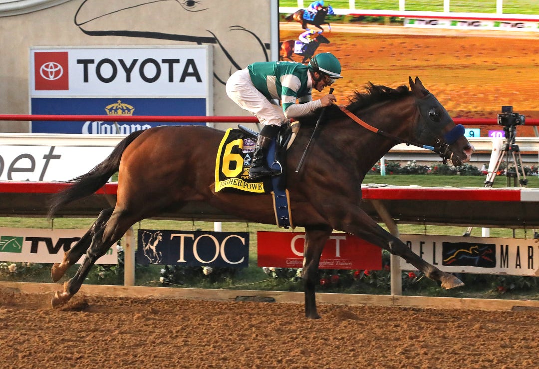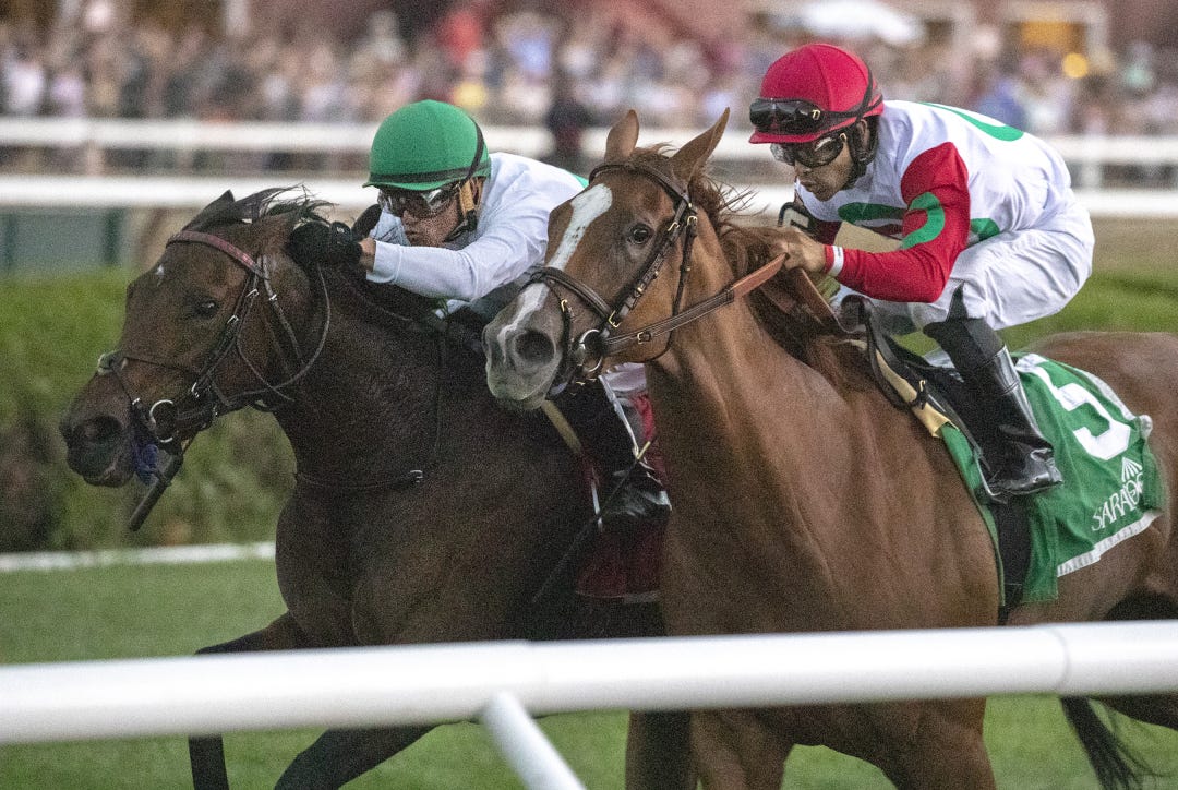 Medaglia d’Oro competed with distinction in the Travers at Saratoga and the Pacific Classic at Del Mar. He will now have the chance to take down both in the same season as a sire.