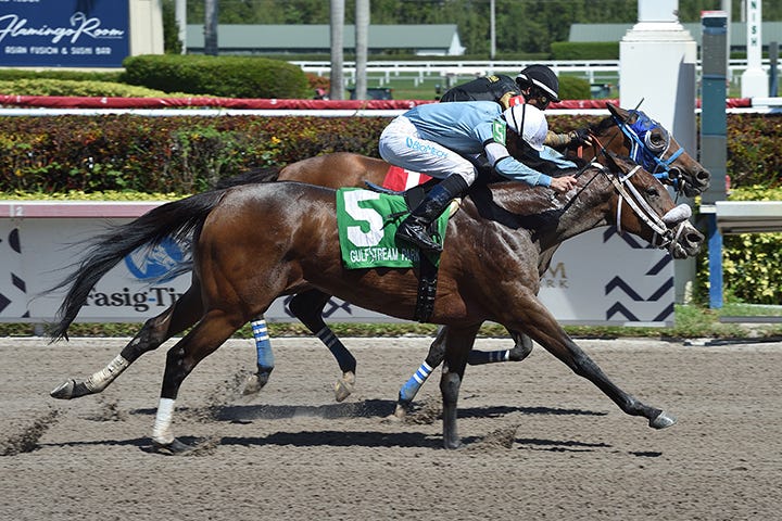 Flashy debut winner Hidden Scroll was the victim of a brutal pace when he faded to fourth in the Grade 2 Fountain of Youth Stakes at Gulfstream Park earlier this month behind Code of Honor. Hidden Scroll, who is from an outstanding family typical of Juddmonte’s program, gets a chance at redemption in Saturday’s Grade 1 Florida Derby.