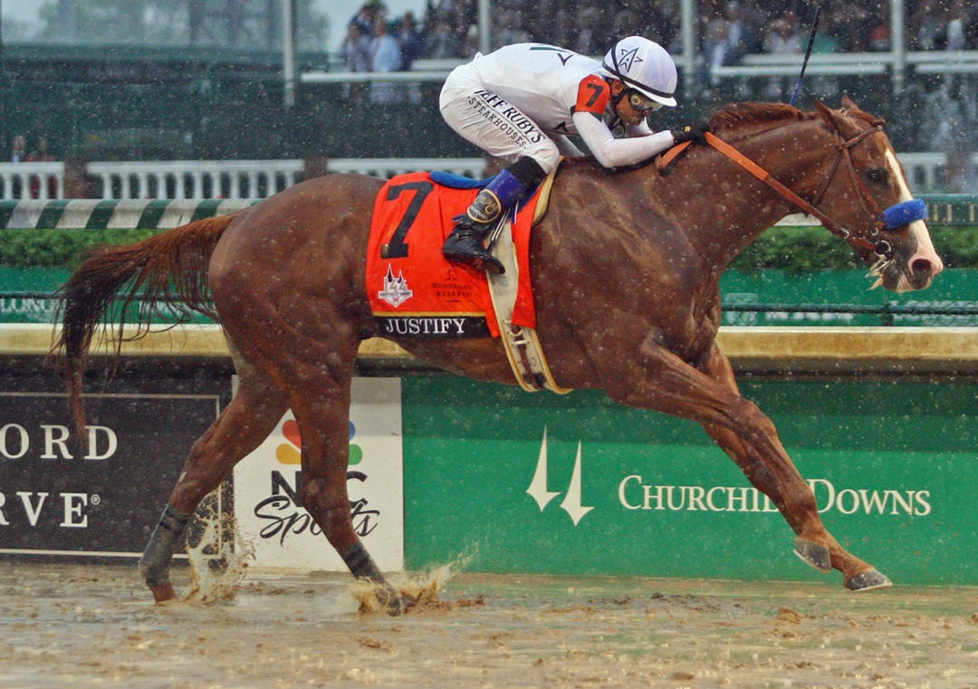 Ghostzapper, Horse of the Year in 2004, lost his chance to be represented as a sire in the Kentucky Derby several weeks ago when son Runaway Ghost was declared from the classic with an injury. But the Adena Springs stallion was still represented as the broodmare sire of unbeaten Derby favorite Justify – who delivered in a big way to key a stellar weekend for the stallion.