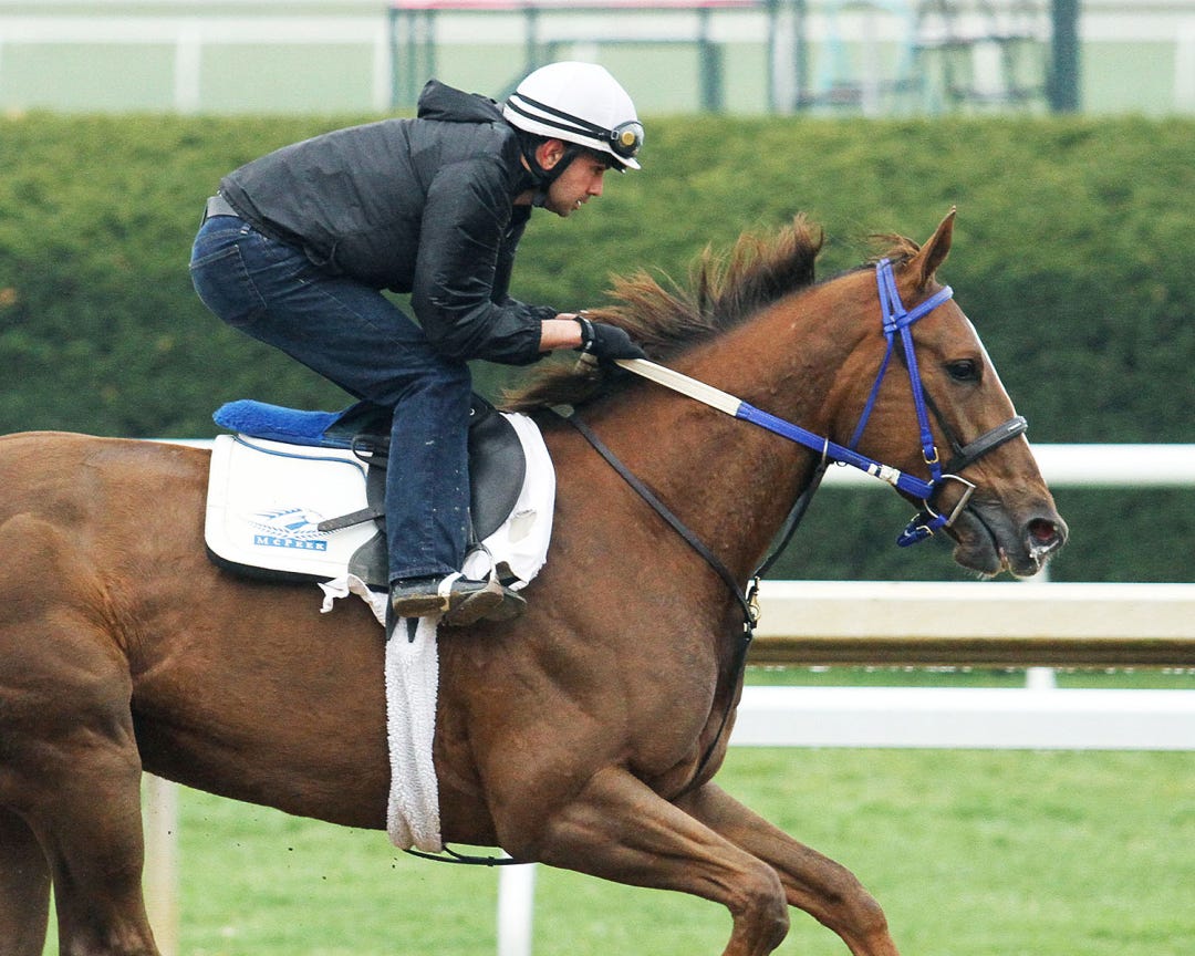 Eskimo Kisses, shown working last week at Keeneland, has never run a race shorter than one mile in seven career starts.
