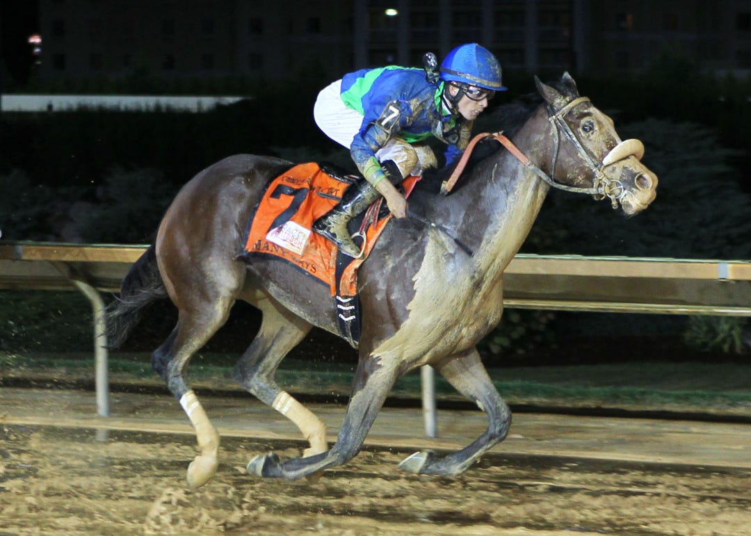 Kentucky shipper So Many Ways, under Miguel Mena, connects as the favorite in the Charles Town Oaks.