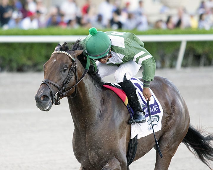 Blame, bred by Claiborne Farm and longtime partner Adele B. Dilschneider, is a product of Claiborne through and through, as he is by the farm’s late sire Arch and out of the Seeking the Gold mare Liable. Nadal also has deep Claiborne ties on both sides of his pedigree, as he is out of Ascending Angel, by the late Claiborne colorbearer Pulpit.