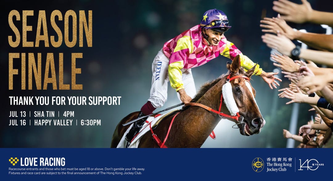 Two race meetings remain in the 2024/25 Hong Kong racing season and fans are invited to join the festivities at Sha Tin Finale Race Day this Sunday (13 July).