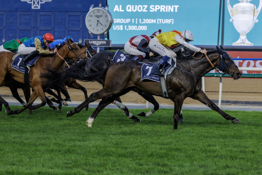 Satono Reve was the 2025 champion sprinter in Japan and made an early claim for the same title this year with a late rally to win the Grade 1 Takamatsunomiya Kinen at six furlongs at Chukyo Racecourse on Sunday for the second consecutive year.