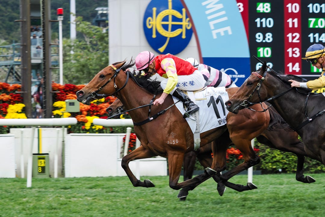 Triumphant after My Wish’s brilliant win in the HK$13 million Hong Kong Classic Mile for Mark Newnham, Ferraris combined with Ricky Yiu to land the midweek feature aboard Mr Ascendency with a perfectly-timed ride.