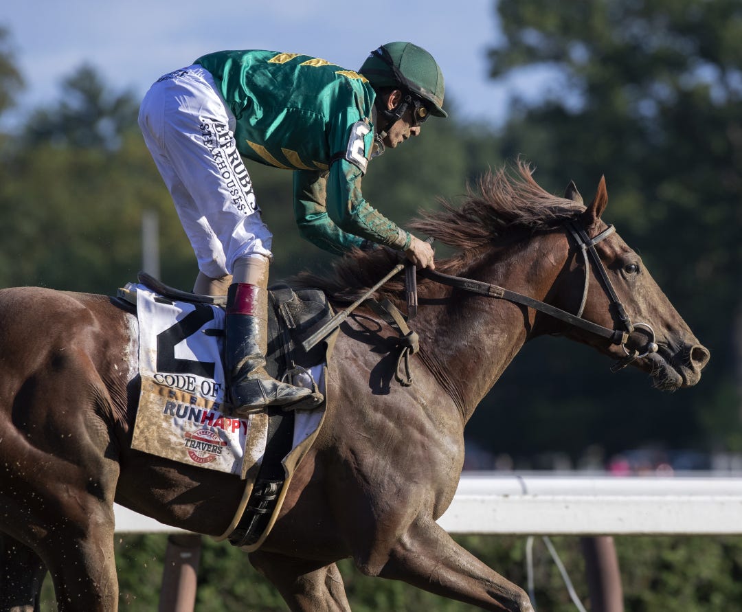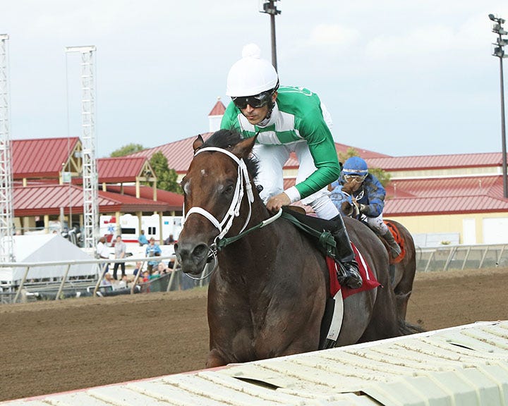 FRANKLIN, Ky. – Totally Boss and Morticia, rich stakes winners Saturday at Kentucky Downs for trainer Rusty Arnold, returned to Arnold’s base at Keeneland late Saturday and came out of their respective races in good condition, Arnold said. Totally Boss got a career-best 101 Beyer Speed Figure for running six furlongs in 1:09.21 winning the $684,640 Runhappy Turf Sprint. Changing his running style from closing to pace-pressing, Totally Boss wore down pacesetting Smart Remark to post a 1 1/4 -length victory.