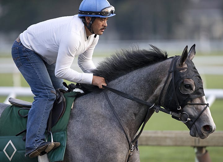 On Friday, Tacitus, equipped with blinkers, worked a half-mile in 49.96 seconds over the Oklahoma training track, starting about two lengths behind Tide of the Sea and finishing on even terms. Tacitus got his last quarter in 24.32 seconds.