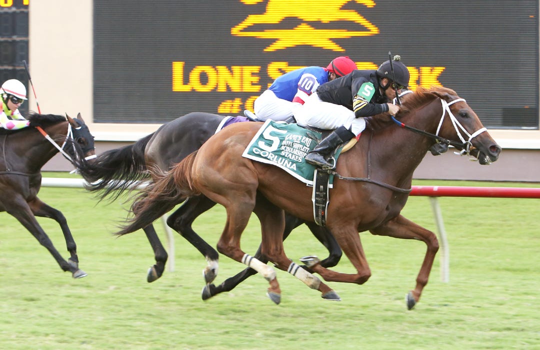 Corluna, a 4-year-old who races for her breeder, Ian Yarnot, was winning her first stakes race, too, Sunday.