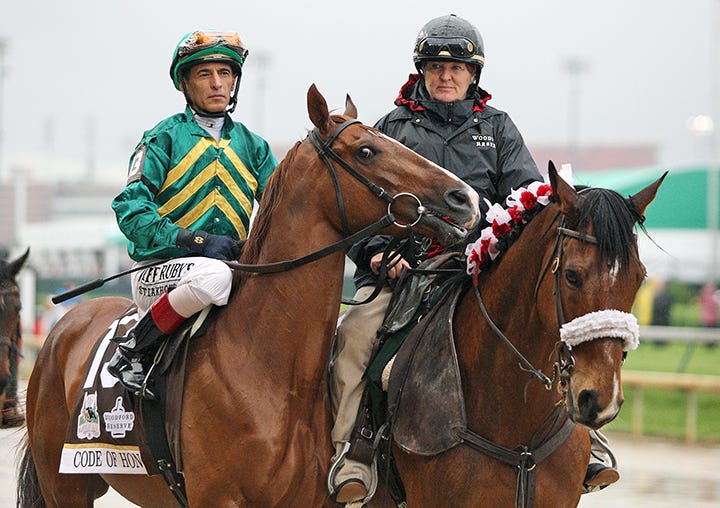 Part of that is because since he finished third – elevated to second with the disqualification from first of Maximum Security – in the Kentucky Derby, Code of Honor has not run. But he is training, and on Sunday, he put in a solid five-furlong move in 1:00.33 over the Belmont main track.