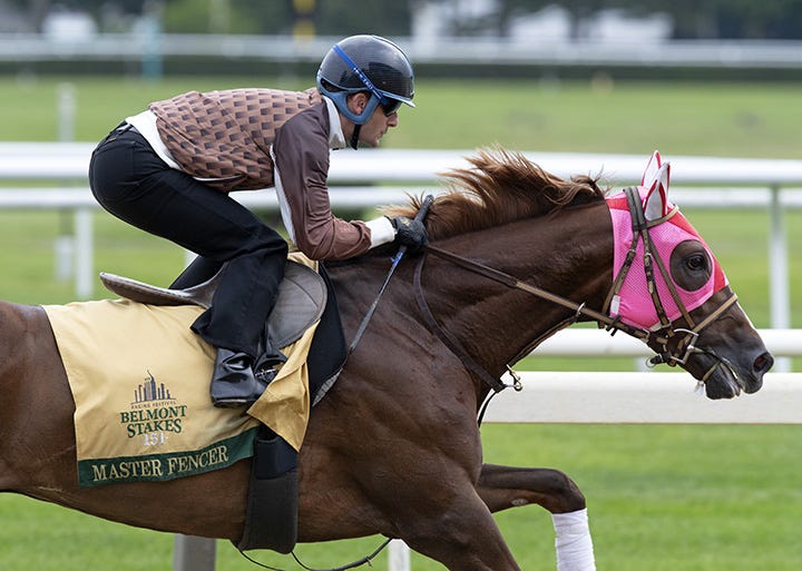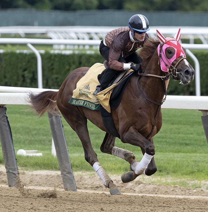 ELMONT, N.Y. – After an eventful and somewhat dismaying seven-furlong work here last week, MASTER FENCER was given a second opportunity to breeze over the Belmont Park main track shortly after the renovation break Wednesday. Unfortunately for his connections, the end result was not really any more encouraging.