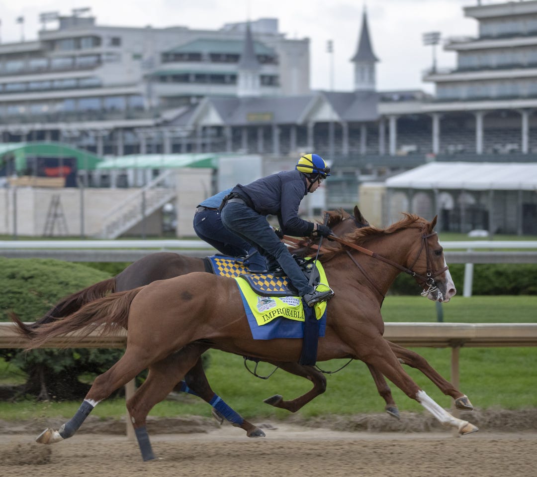 LOUISVILLE, Ky. – Improbable wasn’t beaten all that far by Omaha Beach in the Arkansas Derby in his last start, and he’s training as though he’s fully capable of closing the gap. On Sunday morning at Churchill Downs, Improbable turned in his second drill here, his last in preparation for the Kentucky Derby next Saturday, with a work that was officially five furlongs but included an eye-catching gallop-out.