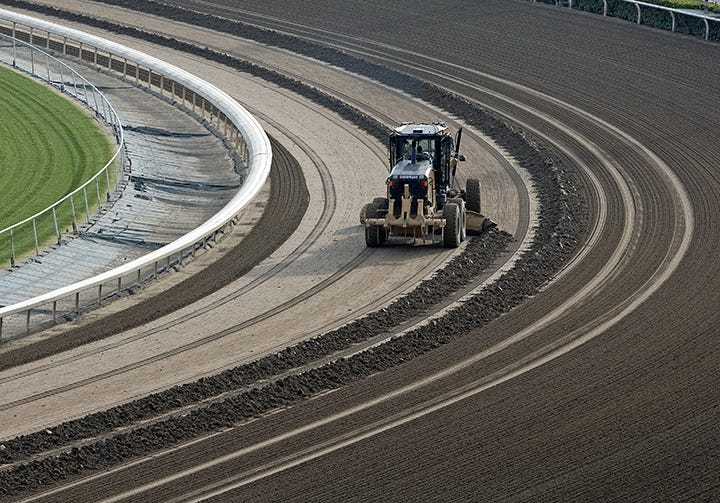 Friday was a busier-than-normal day for workouts, with a rainstorm expected Saturday. Santa Anita closed its main track for training late Monday morning and all of Tuesday and Wednesday to inspect the surface following 19 equine fatalities in recent months. Track officials and consultants said no irregularities were found in the inspection.