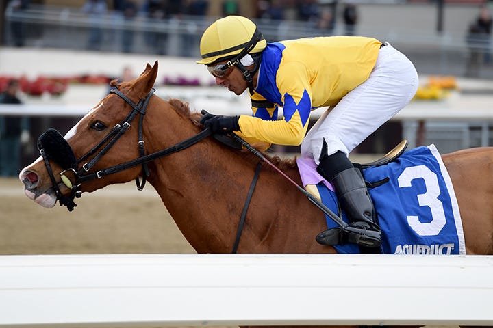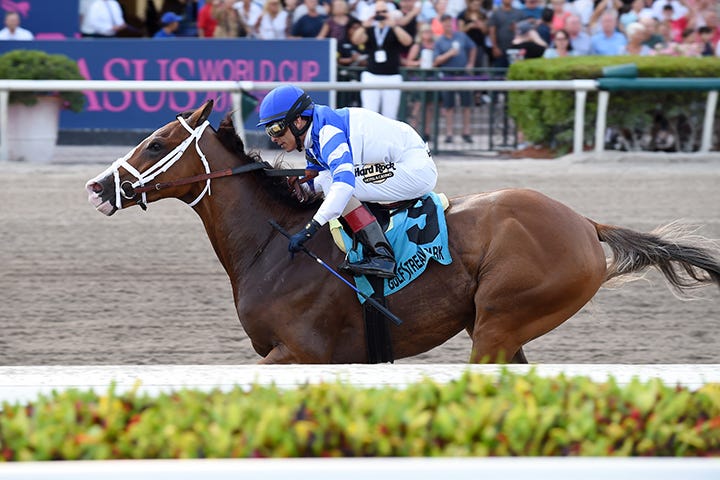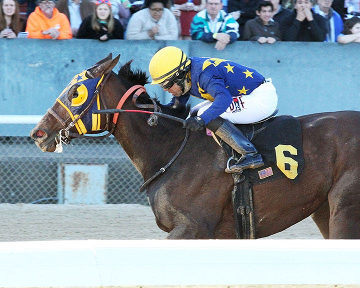 Chocolate Martini, the winner of last year’s Grade 2 Fair Grounds Oaks who was making her first start since October, rallied from next to last for a three-quarter-length win in an allowance route for fillies and mares. For the effort in the 1 1/16-mile race she earned a Beyer Speed Figure of 84.