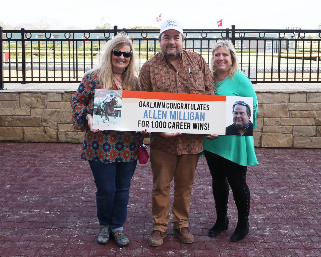 Allen Milligan reached a milestone of 1,000 career Thoroughbred training victories in North America on Saturday, when Soul P Say captured the fifth race at Oaklawn Park.