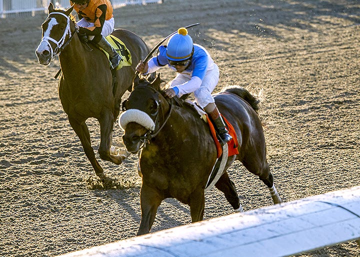 It’s a big day for the horse’s connections: Gayle Benson’s GMB Racing owns Tom’s d’Etat, and the Benson family also owns the New Orleans Saints, who have a National Football League playoff game Sunday afternoon.