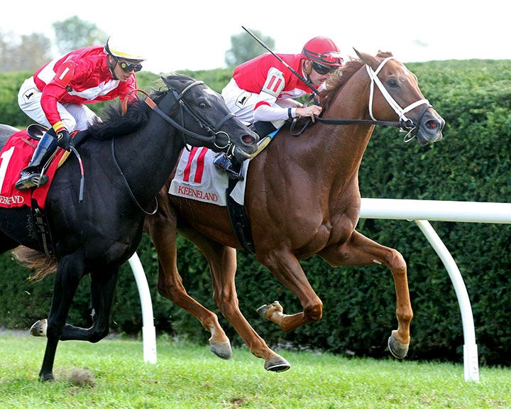 Bell’s the One was set to make her two-turn debut after winning three sprint races – an Arlington maiden, a Keeneland allowance, and the Letellier Stakes here at Fair Grounds last month.