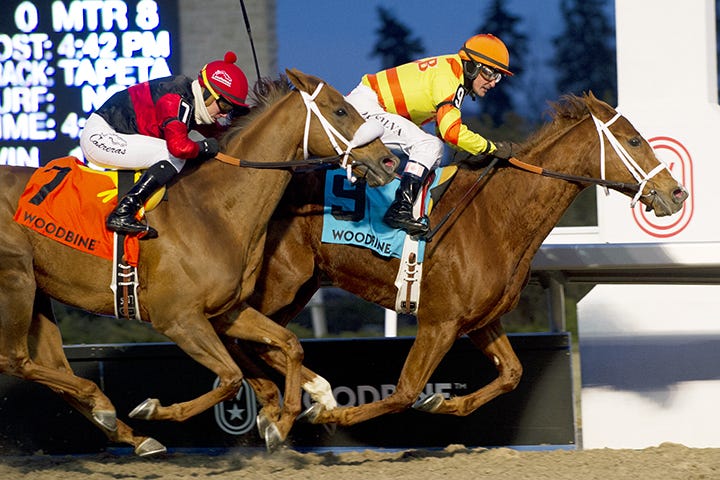 ETOBICOKE, Ontario – Whether it’s a sprint or a route, on turf or synthetic, it doesn’t seem to matter to Kingsport. The 6-year-old recorded his fourth stakes win in eight starts this season by taking the Sir Barton Stakes for the second year in a row at Woodbine on Dec. 2.