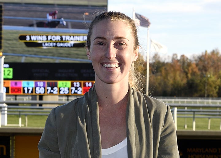 Lacey Gaudet has had a career year, with highs in number of starters (218), victories (44), and purses earned ($1.42 million). She’s been on a remarkable roll the past two months.