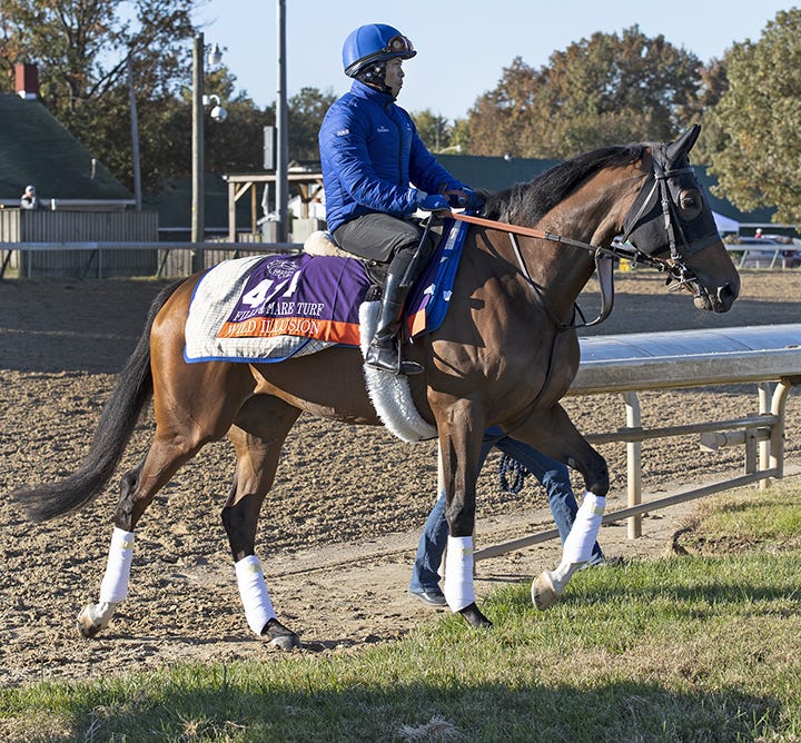 LOUISVILLE, Ky. – The first local appearance of nearly two dozen European contenders for this year’s Breeders’ Cup, a group that included Arc winner Enable and defending BC Turf winner Talismanic, highlighted Monday’s five-hour training session at Churchill Downs. Also featured were impressive-looking breezes by top contenders Midnight Bisou (Distaff) and Yoshida (Classic).