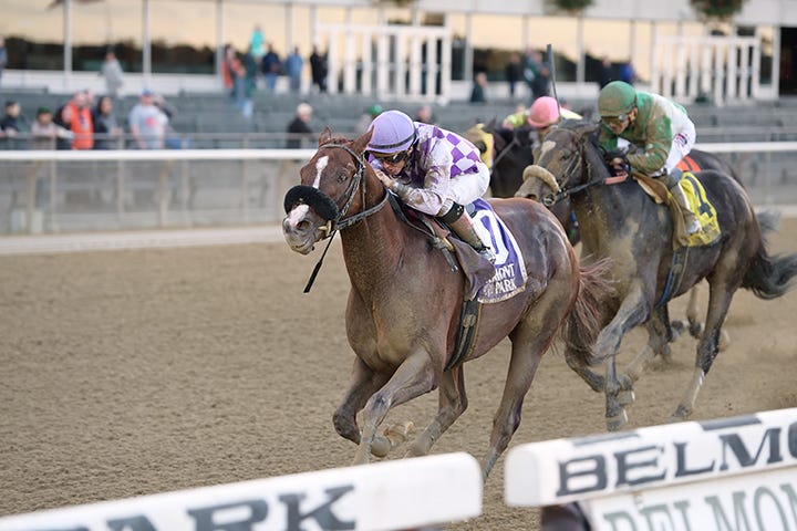 ELMONT, N.Y. – Pat On the Back, winner of the $300,000 Empire Classic on Saturday’s Empire Showcase Day program, could make his next start in the Grade 1, $750,000 Cigar Mile on Dec. 1 at Aqueduct, trainer Jeremiah Englehart said.